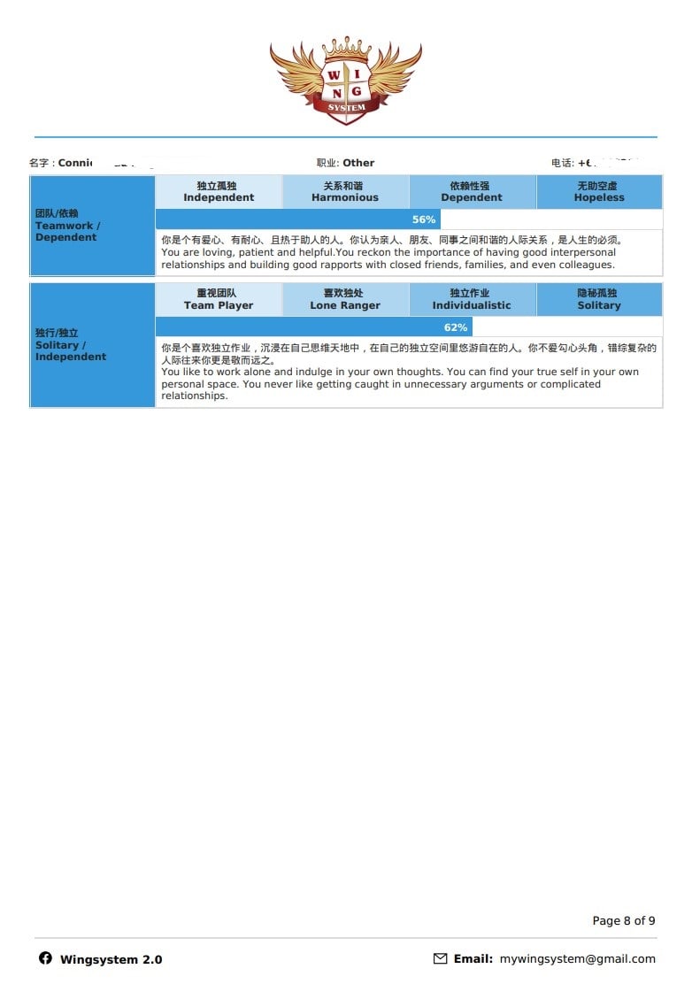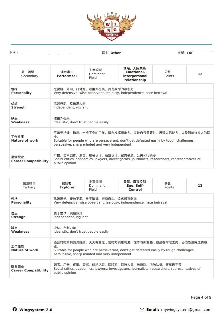 Wing System 职业个性测试