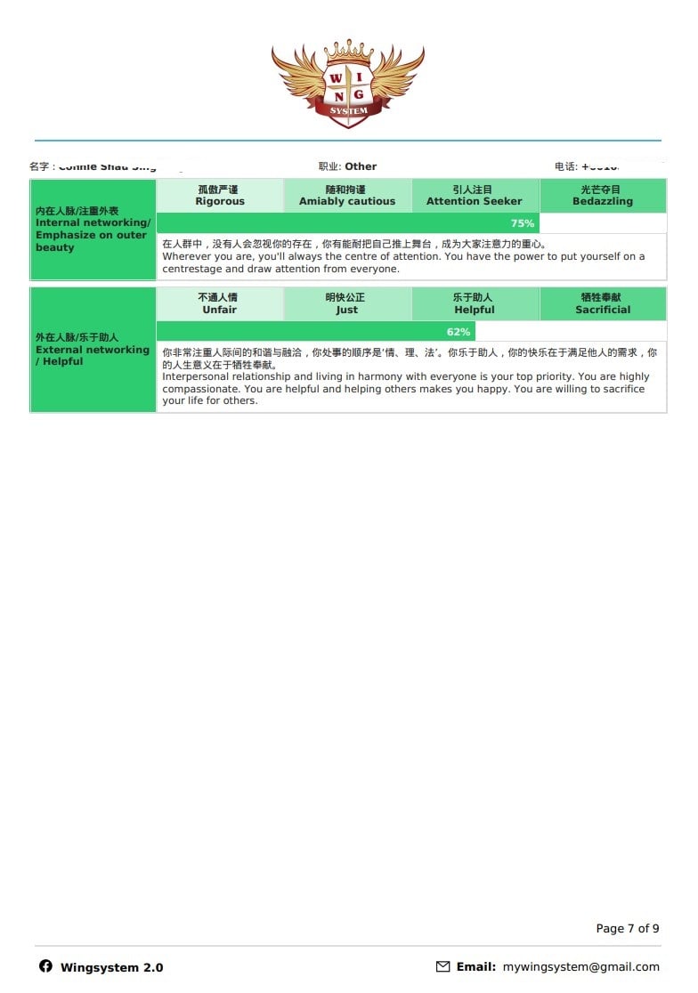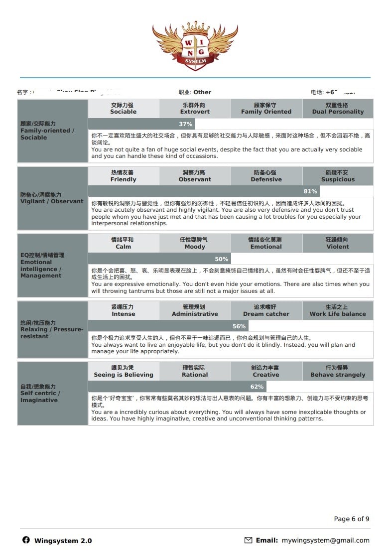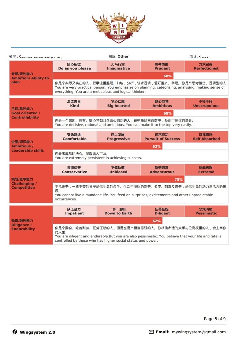This assessment test covers career relationship, partner relationship and family relationship. First, it helps you to discover your potential talents, then proceeds to career planning, marriage management, parenting and so on according to your distinctive personalities in order to give you a clearer direction in life and career path to achieve greater success by be able to foresee the challenges and obstacles that coming your way.